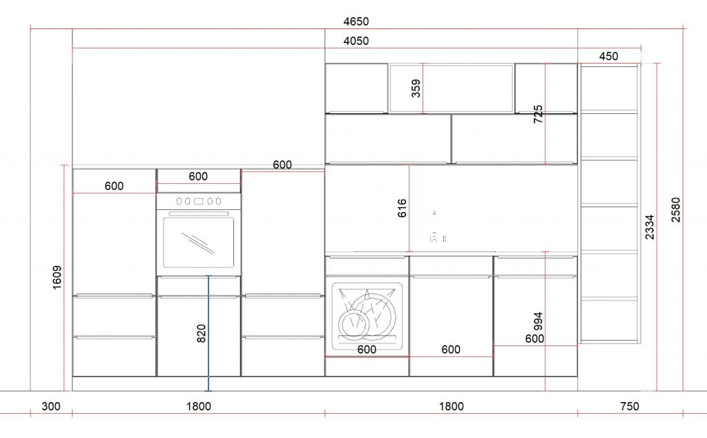 die Küchenzeile hat ca. 360 cm in der Länge und in der Tiefe 60 cm